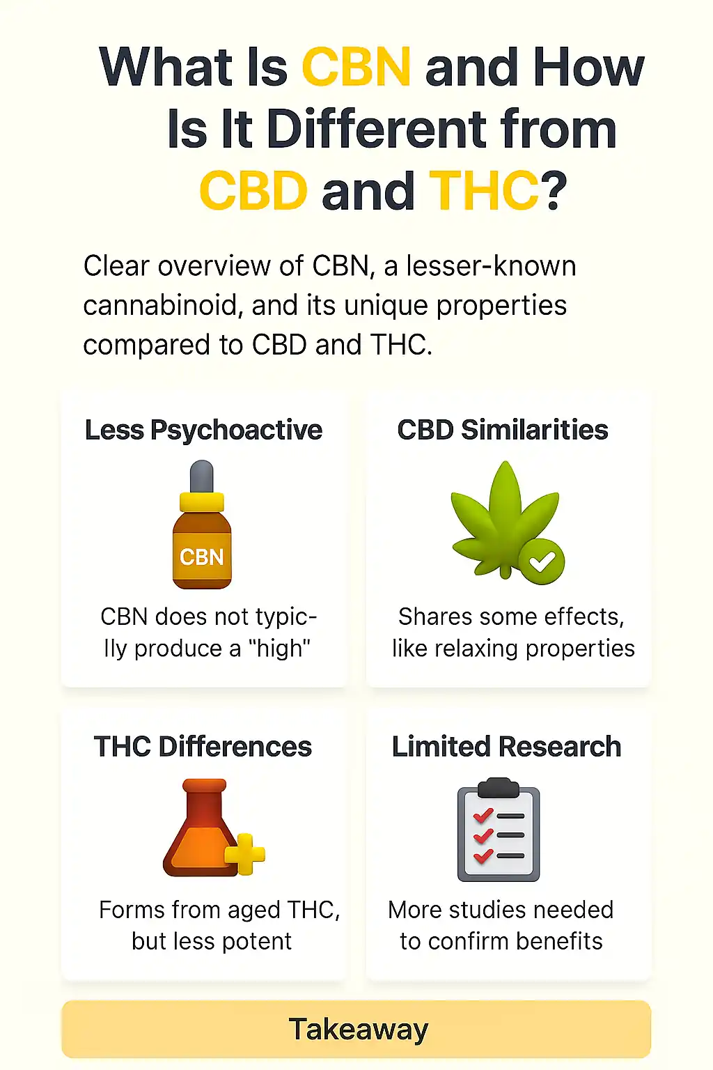 - CBN is different from CBD and THC.